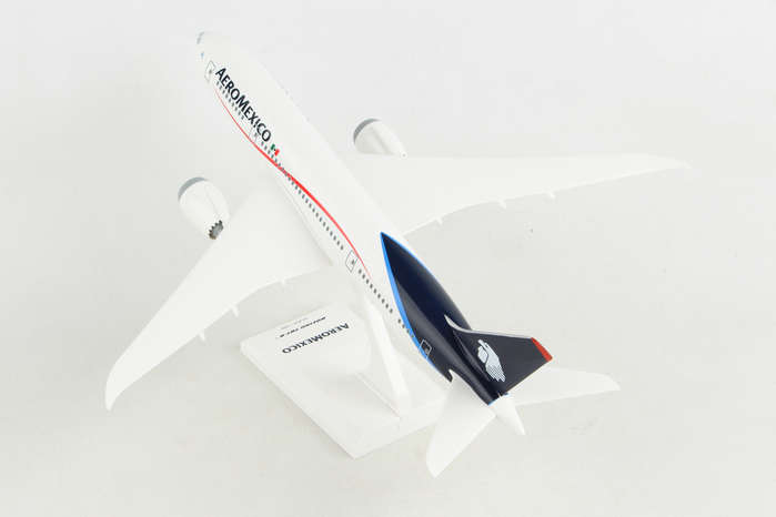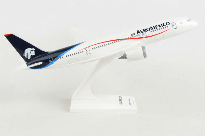 Comprising superior quality, solid, substantial injection molded plastic components with a simple snap-fit design that allows for easy assembly without the need for glue, this SkyMarks 1/200 Scale Aero Mexico Boeing 787-8 Dreamliner measures approximately 11-inches long with a 12-1/8-inch wingspan. An accurate, true-to-scale reproduction of the actual aircraft, the model is great for collectors and features authentic, highly detailed graphics and markings.