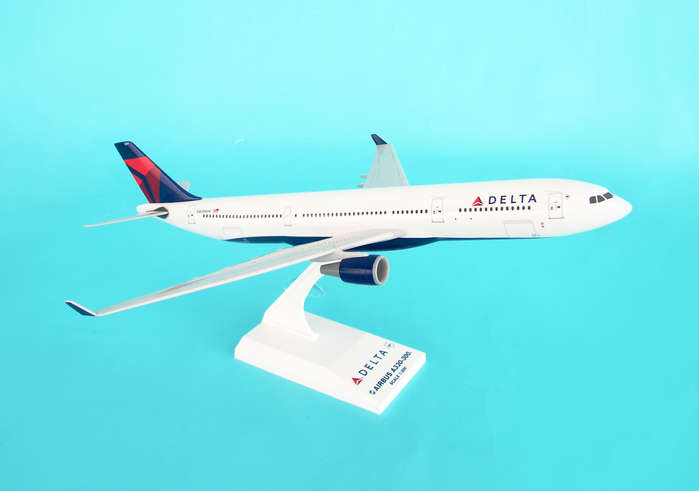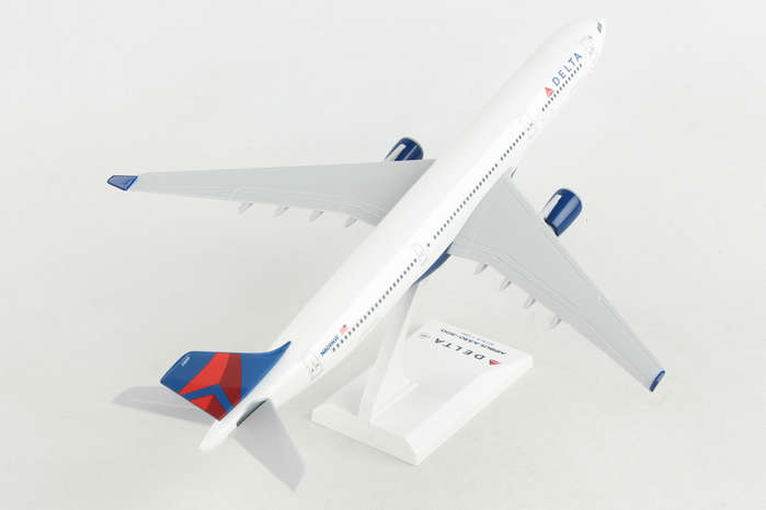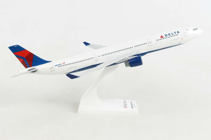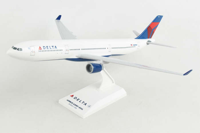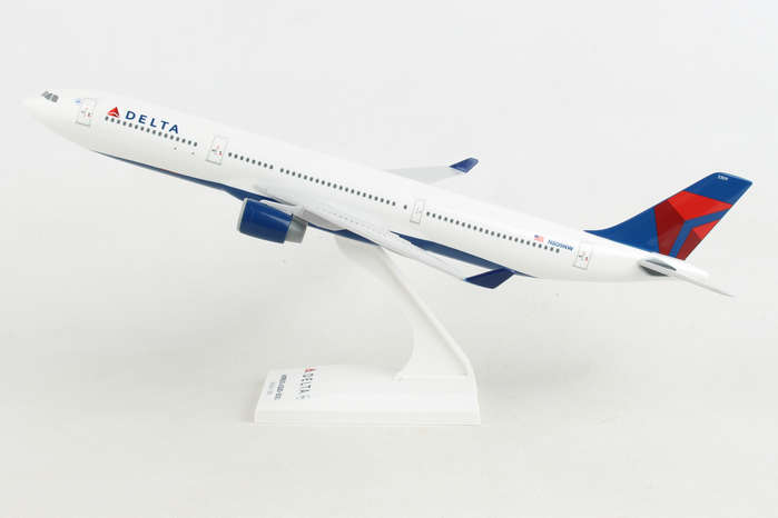 Comprising superior quality, substantial, solid injection molded plastic components with a simple snap-fit design that allows for easy assembly without the need for glue, this SkyMarks 1/200 Scale Delta Airlines A330-300 - Registration N809NW - measures approximately 12-7/16-inches long with a 12-inch wingspan and comes complete with a Display Stand. An accurate, true-to-scale reproduction of the actual aircraft, this Delta Airlines Airbus A330-300, which is manufactured as an officially licensed product, is great for collectors and features authentic, highly detailed graphics and markings.