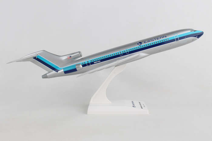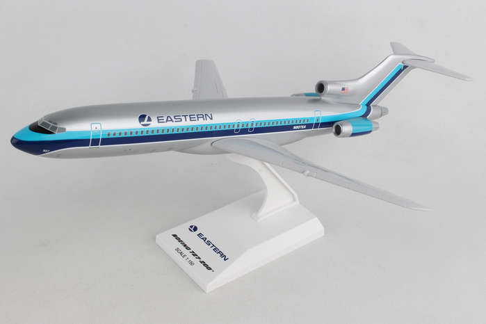 Comprising superior quality, solid injection molded plastic components with a simple snap-fit design that allows for easy assembly without the need for glue, SkyMarks 1/150 Scale Eastern Boeing 727-200 measures approximately 12-3/4-inches long with an 8-inch wingspan and comes complete with a Display Stand. An accurate, true-to-scale reproduction of the actual aircraft, the model is great for collectors and features authentic, highly detailed graphics and markings. The Boeing 727-200 was introduced in 1967 as a 20-foot longer version of the earlier Boeing 727-100 to accommodate more passengers, a greater payload and a slightly longer flying distance. Mainly used for domestic flights, the Boeing 727-200 is a narrow-body airliner that was developed to address the demand for smaller aircraft for use on relatively short flights from smaller airports. Boeing ended production of the 727 series in September 1984, having built a total of 1,832 planes.