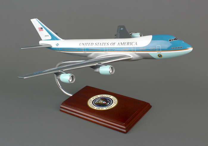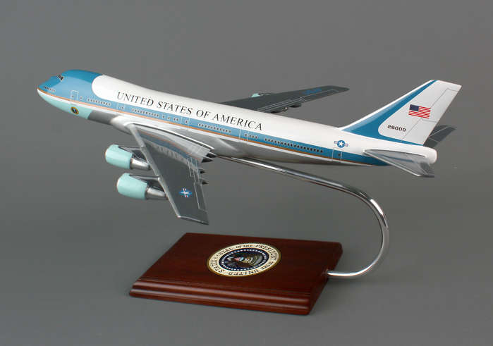 United States Air Force - Boeing VC-25A is a passenger transportation aircraft military version of the Boeing 747 airliner. The VC-25 is most famous for its role as Air Force One, the callsign of any U.S. Air Force aircraft carrying the President of the United States. The two aircraft currently in U.S. service are highly modified versions of Boeing's 747-200B, with tail numbers 28000 and 29000. Although the Air Force One designation technically applies to the aircraft only while the President is aboard, the term is commonly applied to the VC-25s more generally. They often operate in conjunction with Marine One helicopters that ferry the President to airports in circumstances where a vehicle motorcade would be inappropriate. Hand crafted Mahogany wood. 19"L 16"W