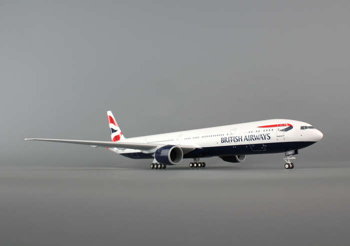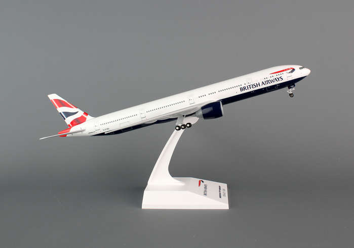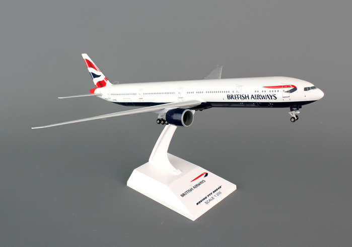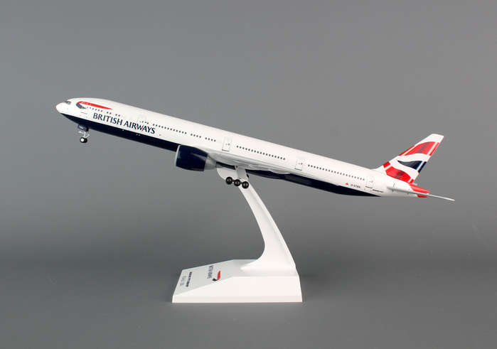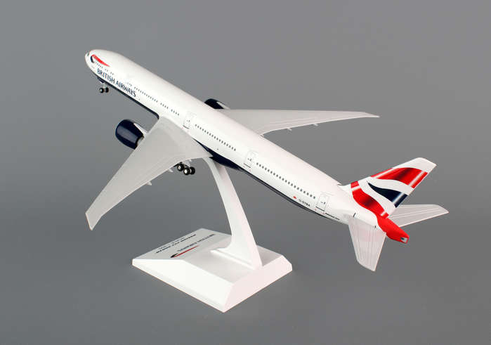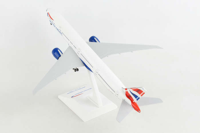 Comprising superior quality, solid, substantial injection molded plastic components with a simple snap-fit design that allows for easy assembly without the need for glue, this SkyMarks 1/200 scale British Airways Boeing 777-300ER, with Registration G-STBA, measures approximately 14-3/8-inches long with a 12-3/4-inch wingspan and comes complete with Landing Gear and a Display Stand. An accurate, true-to-scale reproduction of the actual aircraft, the model is great for collectors and features authentic, highly detailed graphics and markings.
