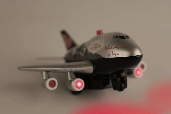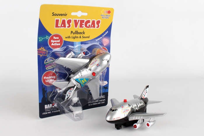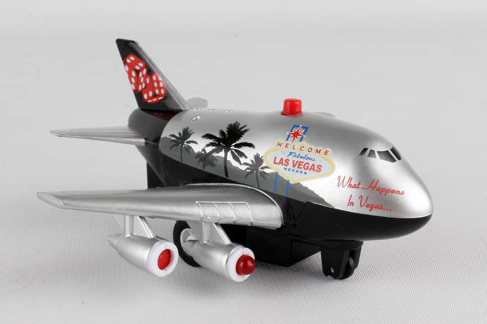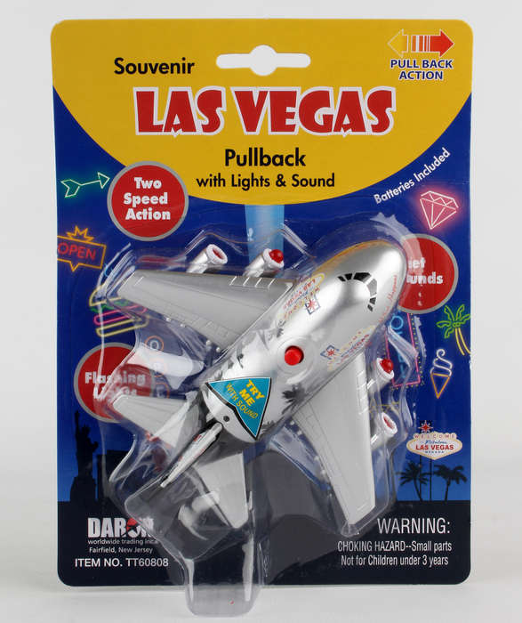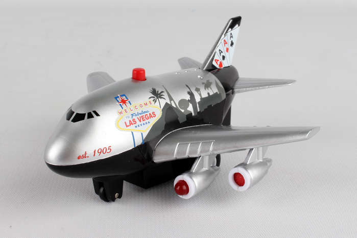 This stylized aircraft features electronic jet sound and flashing red lights, activated by the push of a button on top of the fuselage! Pull the plane back and let it go forward in the take-off position. Ages 3+