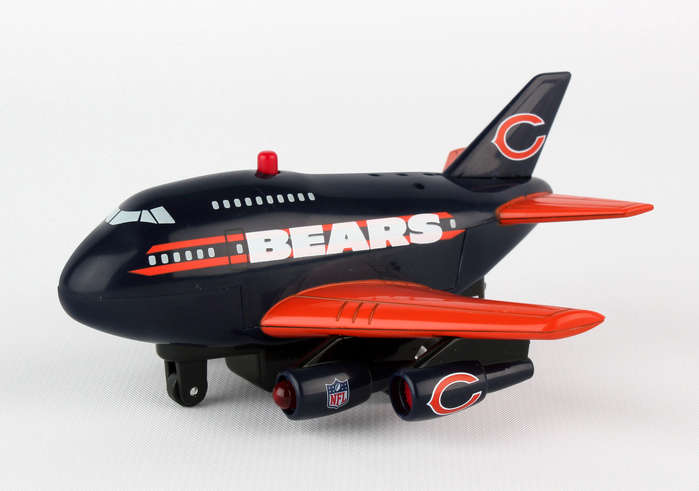 This stylized aircraft features electronic jet sound and flashing red lights, activated by the push of a button on top of the fuselage! Pull the plane back and let it go forward in the take-off position. Plastic construction. Approximately 5" long. Batteries included.