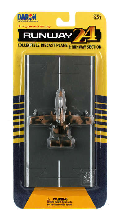 Runway24 by Daron (with Runway Section) are detailed, die-cast metal airplane toys that can be used together. Commercial, military and general aviation-style aircraft with real markings. Each die-cast aircraft comes with a flexible rubber runway section. These sections can be used together with other Runway24 sets to create your own airport. Intersections, straight sections, and curved pieces available separately. Ages 3+