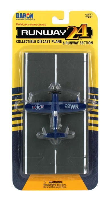 Runway24 by Daron (with Runway Section) are detailed, die-cast metal airplane toys that can be used together. Commerical, military and general aviation-style aircraft with real markings. Each die-cast aircraft comes with a flexible rubber runway section. These sections can be used together with other Runway24 sets to create your own airport. Intersections, straight sections, and curved pieces available seperately. Ages 3+