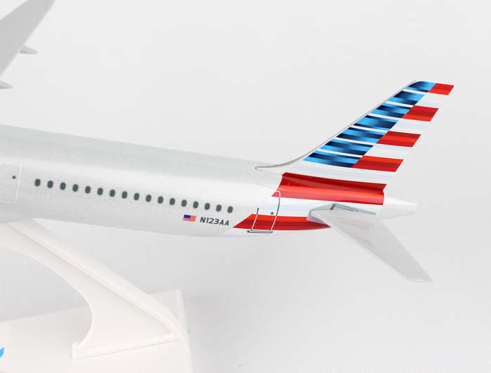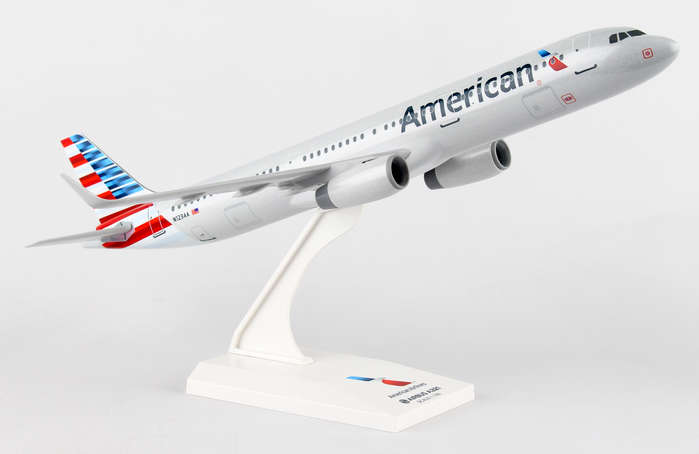 Comprising superior quality, substantial, solid injection molded plastic components with a simple snap-fit design that allows for easy assembly without the need for glue, this SkyMarks 1/150 Scale American Airlines Airbus A321 - with Registration N123AA - measures approximately 11-5/8-inches long with a 9-5/8-inch wingspan and comes complete with a Display Stand. An accurate, true-to-scale reproduction of the actual aircraft, the model is great for collectors and features authentic, highly detailed graphics and markings. A derivative of the Airbus A320 with a stretched fuselage, the Airbus A321, which went into service in 1994, is a narrow body, short to medium range, twin engine commercial jet that can be configured to typically carry 185 to 236 passengers. To give the Airbus A321 full-transcontinental range with maximum passenger capacity, Airbus began development of the next version of its A321 in 1995, the A321-200, that entered service in 1997 as a larger and heavier aircraft than the earlier A321 with minor structural strengthening modifications, higher thrust engines, and additional fuel tanks.