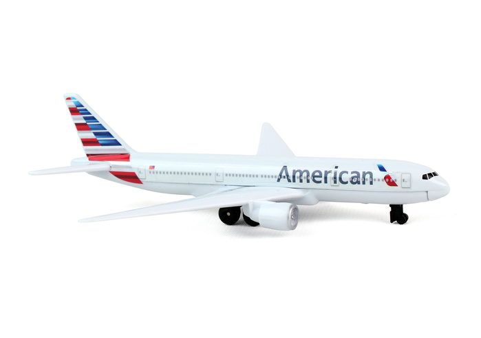 Fueled by your budding pilot's imagination, the DARON American Airlines single Plane is ready to soar right out of the package on journeys to faraway, mysterious places around the world. Constructed from diecast metal and plastic parts with an authentic livery, the DARON American Airlines Single Plane even has rolling wheels to ensure your furniture and floors remain unblemished during taxiing, takeoffs and landings. Perfect for little hands, the DARON Single Plane measures approximately 5-1/2-inches (L) x 5-3/4-Inches (W) x 1-3/4 Inch (H) and is intended for ages 3 and up.