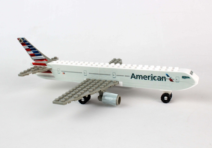 Airline construction block kit includes 55 pieces and is interchangeable with other leading brands. Ages 5+