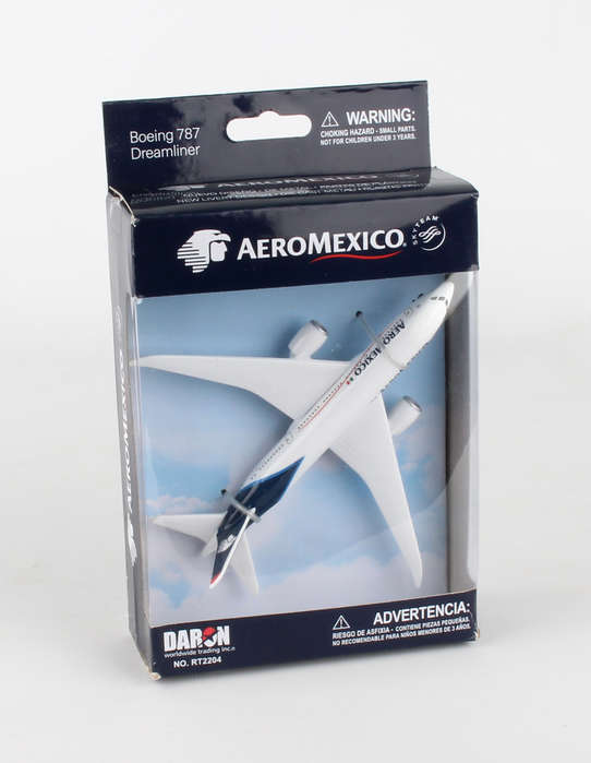 Fueled by your budding pilot's imagination, the DARON Aeromexico single Plane is ready to soar right out of the package on journeys to faraway, mysterious places around the world. Constructed from diecast metal and plastic parts with an authentic livery, the DARON Aeromexico Single Plane even has rolling wheels to ensure your furniture and floors remain unblemished during taxiing, takeoffs and landings. Perfect for little hands, the DARON Single Plane measures approximately 5-1/2-inches (L) x 5 3/4-Inches (W) x 1-Inch (H) and is intended for ages 3 and up.