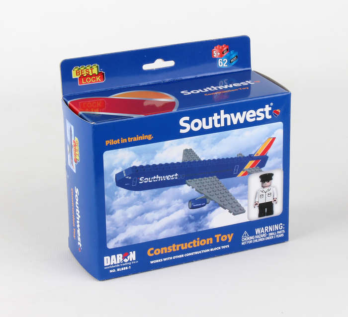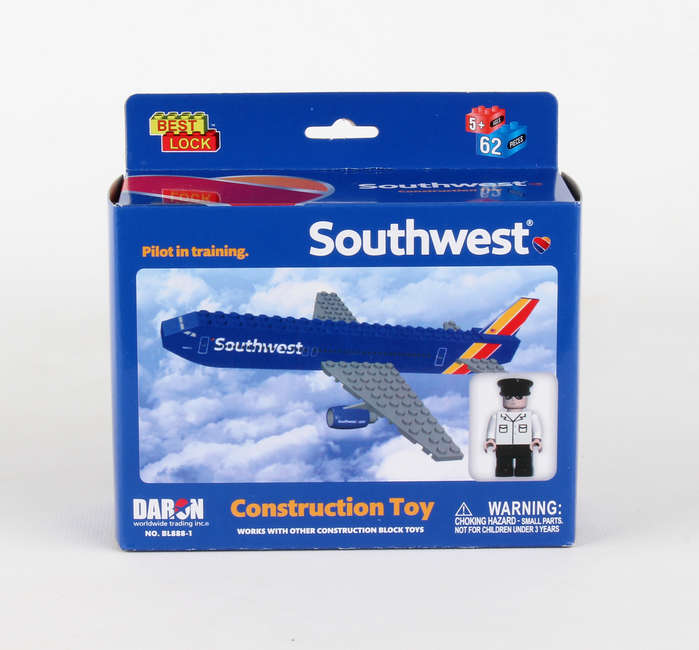 Airline construction block kit includes 55 pieces and is interchangeable with other leading brands. Ages 5+