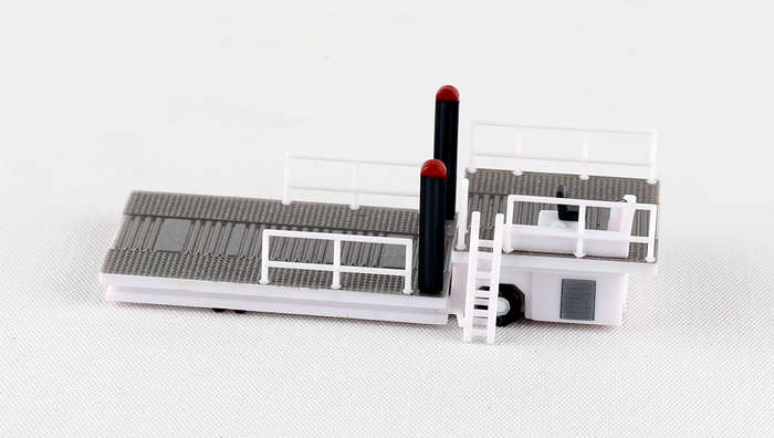 You can now load even the largest 1/200 scale containers with this new vehicle. The front platform is adjustable. Item is approximately 2 5/8 inches long 7/8 inches wide and 7/8 inches tall.