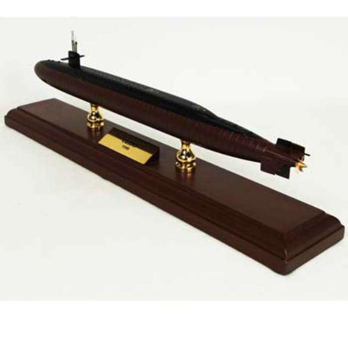 The Ohio class of nuclear-powered submarines is the sole class of ballistic missile submarines (SSBN) currently in service with the United States Navy. This high quality replica is handcrafted from wood and comes with a wooden base. Length is 19.25" and beam is 1.50".