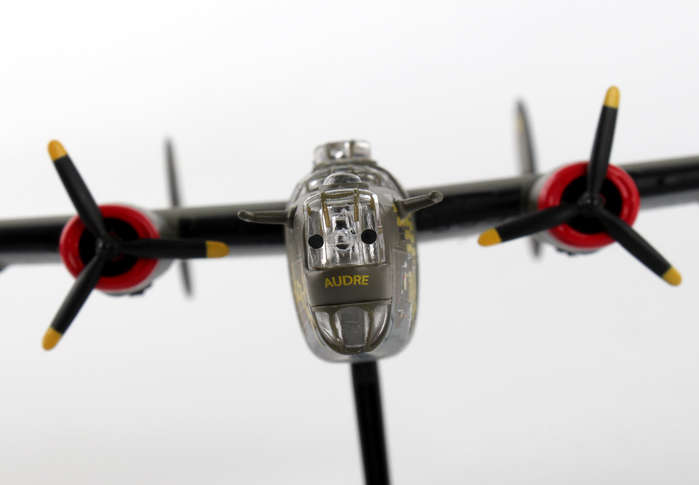 The B-24 Liberator is an American four-engine, twin-tail heavy bomber, designed by Consolidated Aircraft. It was the most-produced American military aircraft, with 18,493 units made. It was used extensively in World War II in every branch of the American armed forces. The B-24J Liberator
