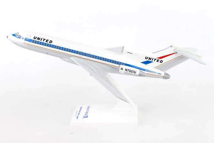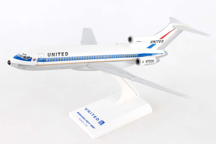 Comprising superior quality, solid injection molded plastic components with a simple snap-fit design that allows for easy assembly without the need for glue, SkyMarks 1/150 Scale United Boeing 727-100 measures approximately 11-1/8-inches long with a 7-1/2-inch wingspan and comes complete with a Display Stand. An accurate, true-to-scale reproduction of the actual aircraft, the model is great for collectors and features authentic, highly detailed graphics and markings. United and Eastern were the initial launch customers for the Boeing 727-100, which first flew in February 1963. Mainly used for domestic flights, the Boeing 727-100 is a narrow-body airliner that was developed to address the demand for smaller aircraft for use on shorter flights from smaller airports. Boeing ended production of the 727 series in September 1984, having built a total of 1,832 planes.