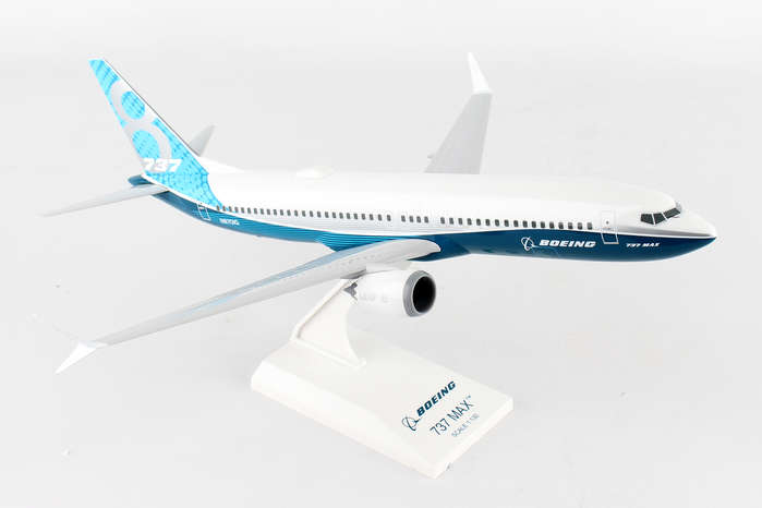 Comprising superior quality, solid, substantial injection molded plastic components with a simple snap-fit design that allows for easy assembly without the need for glue, this SkyMarks 1/130 Scale Boeing 737 MAX 8, featured in its "Boeing House Colors Roll Out Livery," measures approximately 12-inches long with an 11-3/16-inch wingspan and comes complete with a Display Stand. An accurate, true-to-scale reproduction of the actual aircraft, the model is great for collectors and features authentic, highly detailed graphics and markings. Having commenced service in 2017 as the fourth generation of the Boeing 737, the Boeing 737 MAX 8 is a twin-engine, narrow-body airliner that was designed to succeed the prior Boeing 737 Next Generation series and competes against the Airbus A320neo family. The Boeing 737 MAX line features several noteworthy advantages over earlier 737 variants and has been outfitted with more efficient engines, a fly-by wire system and includes beneficial cockpit enhancements along with improved aerodynamics and a greater flying range. The 737 MAX 8, which has a range of 3,550 nautical miles, can be configured to seat up to 210 passengers and directly replaces the third generation Boeing 737-800.