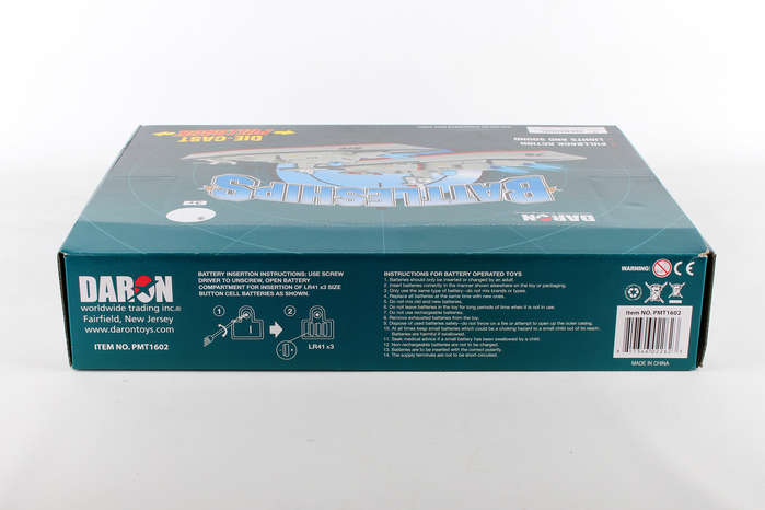 This die-cast metal/plastic has pullback action and lighs/sound. Ages 3+