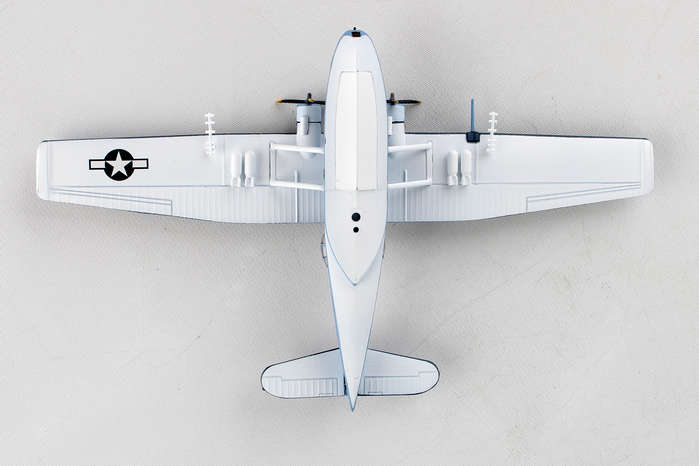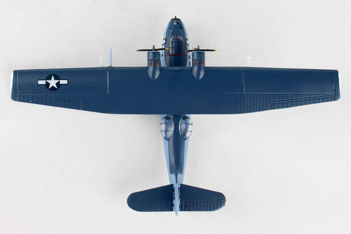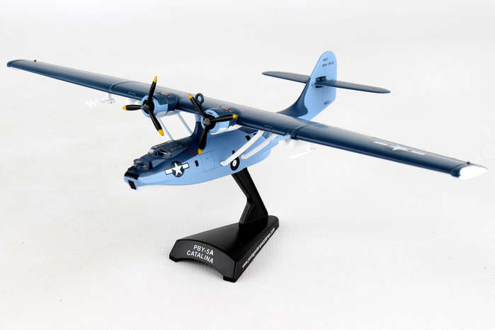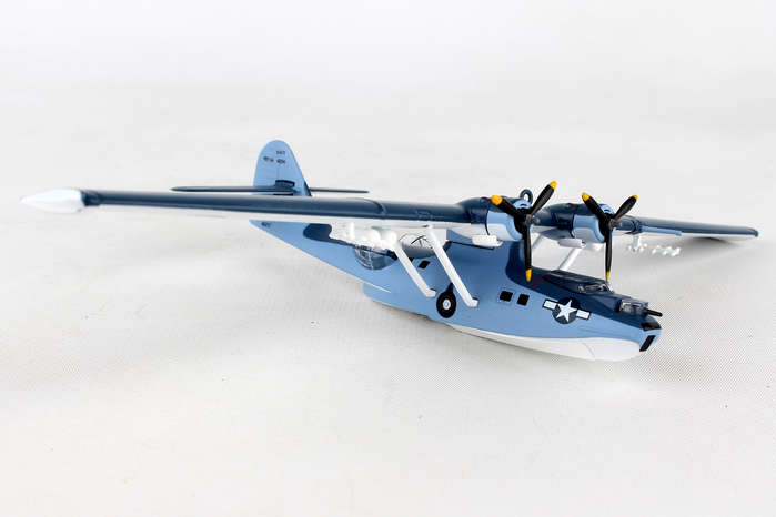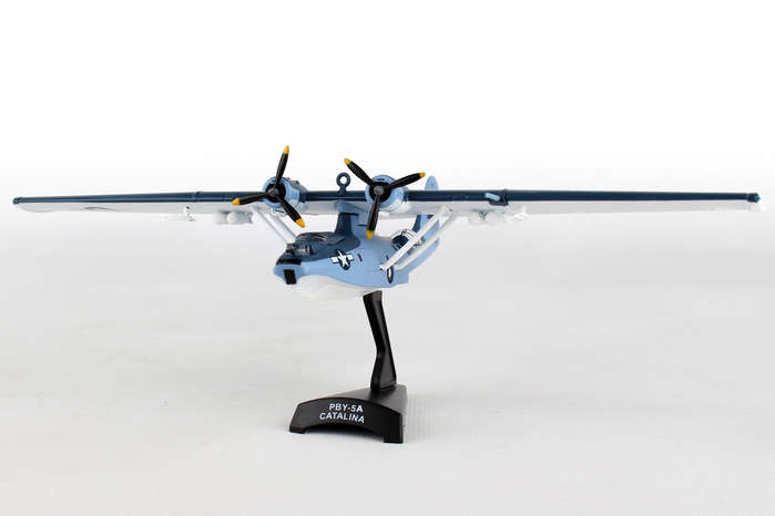 This Die-cast metal airplane model comes in 1:150 scale with plastic stand and is approximately 5 1/8 inches long with 8 1/4 inch wingspan. Adult Collectible ages 14+ The PBY Catalina was flying patrol boat produced by Consolidated Aircraft in the 1930s and 1940. The Catalina was designed to be a long-range patrol bomber intended to locate and attack enemy transport ships at sea. The amphibious PBY-5A was the most produced variant and served in reconnaissance, anti-submarine warfare, convoy-escort and air-sea rescue. It was one of the most widely used seaplanes of World War II. PBY-5 Bureau Number 48294 was built in 1943, and served in a variety of locations around the Atlantic during World War II and with the Coast Guard after the war. It was restored in 2001 and is currently on display at the Military Aviation Museum in Virginia Beach, Virginia.