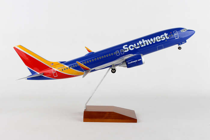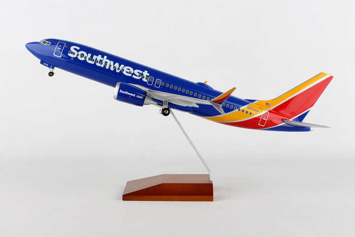 Skymarks Southwest 737-MAX8 1/100 W/Wood Stand & Gear