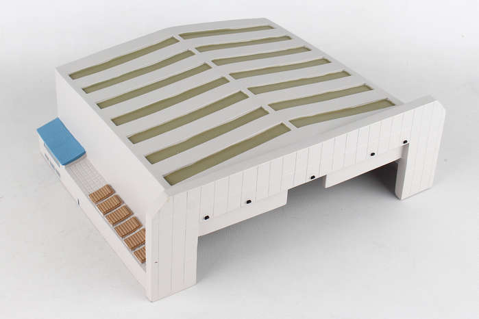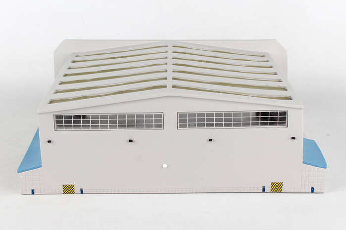 This wide-body aircraft hanger can be used in conjuction with the airport terminal display. Constructed of heavy-duty plastic.