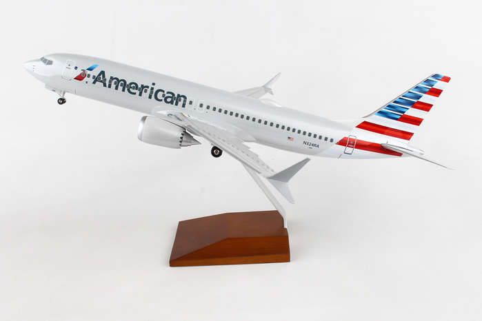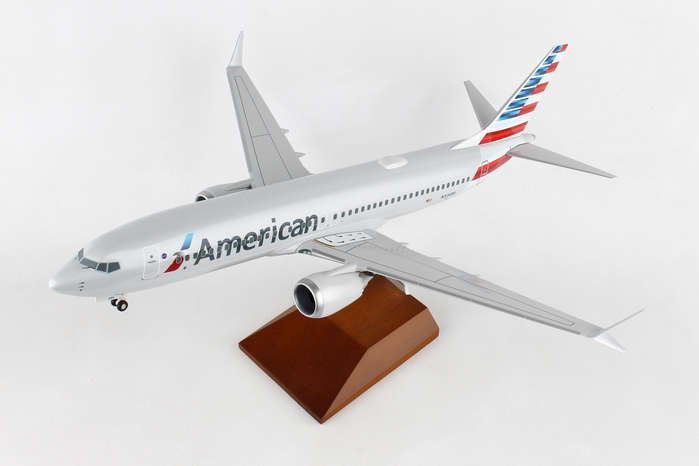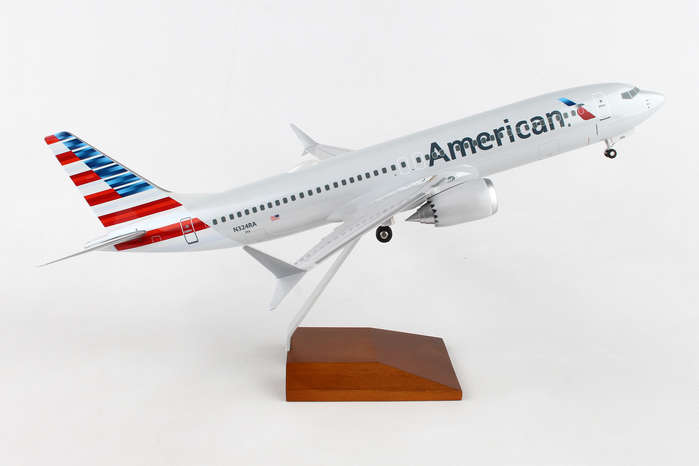 Skymarks American 737MAX8 1/100 W/Wood Stand & Gear