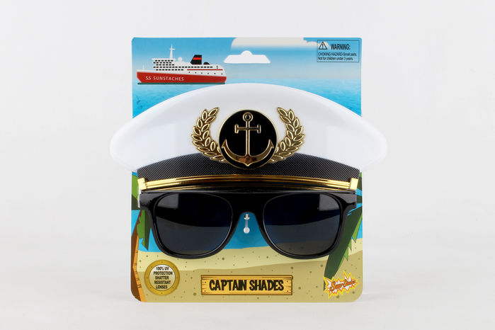 A smooth sea never made a skillful sailor. Assume the rank of captain with the High Seas: Captain's Hat Sun-Staches. 100% UV400 Protection Impact Resistant Lenses Great for Adults and Kids - One Size Fits Most
