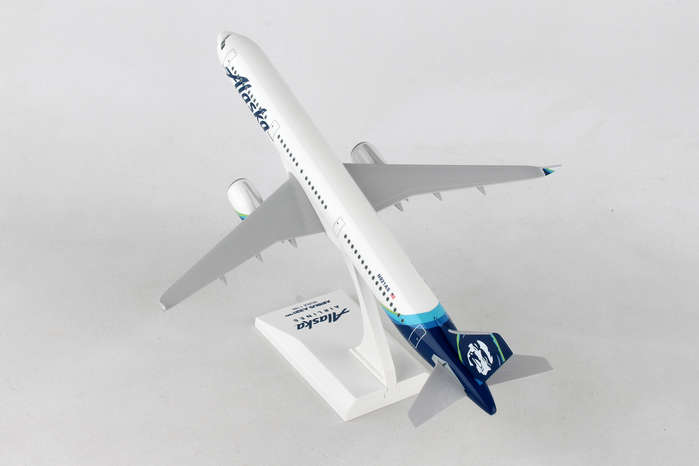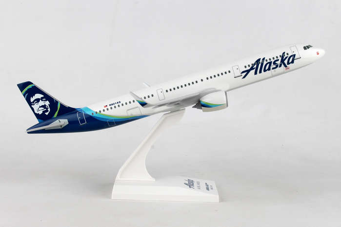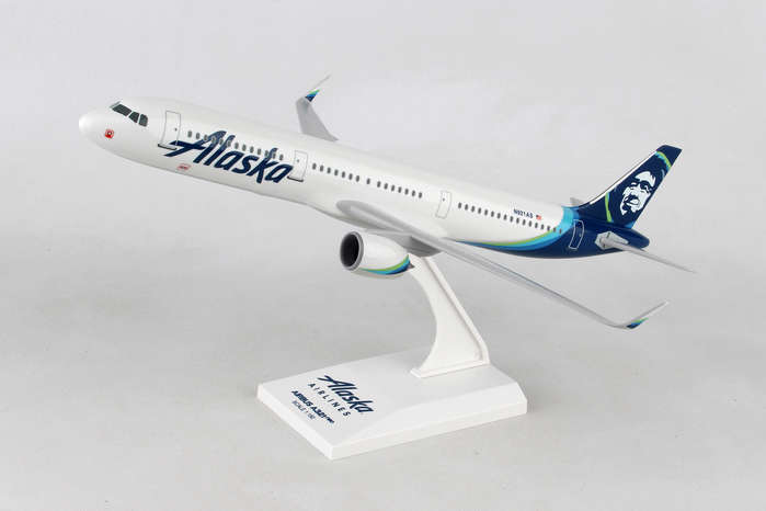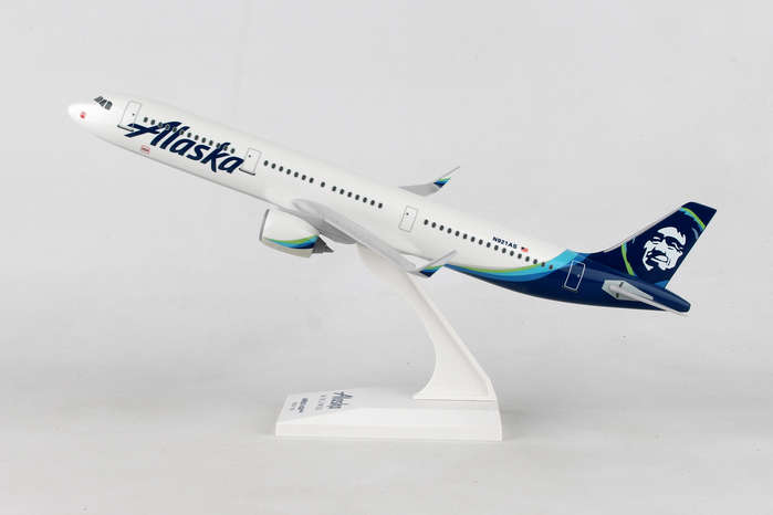 Comprising superior quality, substantial, solid injection molded plastic components with a simple snap-fit design that allows for easy assembly without the need for glue, this SkyMarks 1/150 Scale Alaska Airlines Airbus A321neo - Registration N921AS - measures approximately 11-5/8-inches long with a 9-5/8-inch wingspan and comes complete with a Display Stand. An accurate, true-to-scale reproduction of the actual aircraft, the model is great for collectors and features authentic, highly detailed graphics and markings. The Airbus A321, which entered service in 1994 as an innovative pioneer with technologically advanced digital fly-by-wire side stick controls, is a stretched variant of the Airbus A320 family of short to medium range, narrow body commercial twin jet airliners and has the longest fuselage of the A320 series of aircraft. According to Airbus, it can comfortably seat 180 to 220 passengers in a typical two-class layout and as many as 244 passengers in a higher density arrangement. Utilized around the world by low-cost operators and mainline carriers alike to fly to all types of destinations in all types of environments, including short, urban runways, hot, dry deserts, icy Antarctic landing sites and remote high-altitude airports, the cockpit of the Airbus A321 shares commonality with the Airbus A319, A320 and A321, enabling pilots to not only readily change from one aircraft to another as needed with a Common Type Rating, they can even easily step up to widebody Airbus aircraft, making it easier for airlines to deploy flight crews with greater flexibility. Based on the previous A320 family, which includes the A319, A320 and A321, Airbus released a more efficient version of the current Airbus A321 (which it has renamed the A321ceo, for "current engine option"), the Airbus A321neo, for "new engine option," which offers more efficient engines along with airframe improvements and the addition of winglets, consequently yielding a fuel savings of up to 15% and a maximum flight range of 4,000 nautical miles.