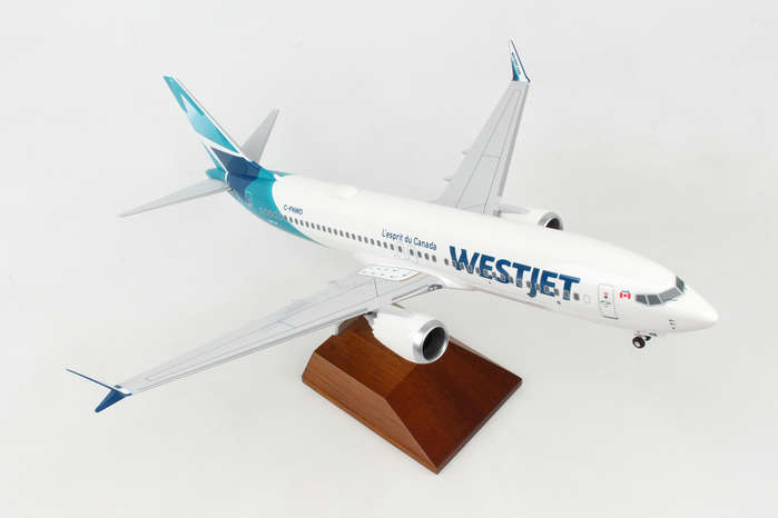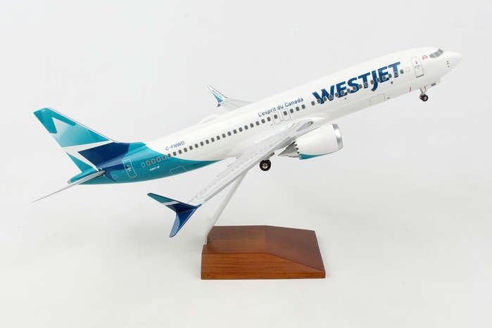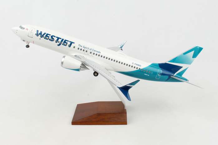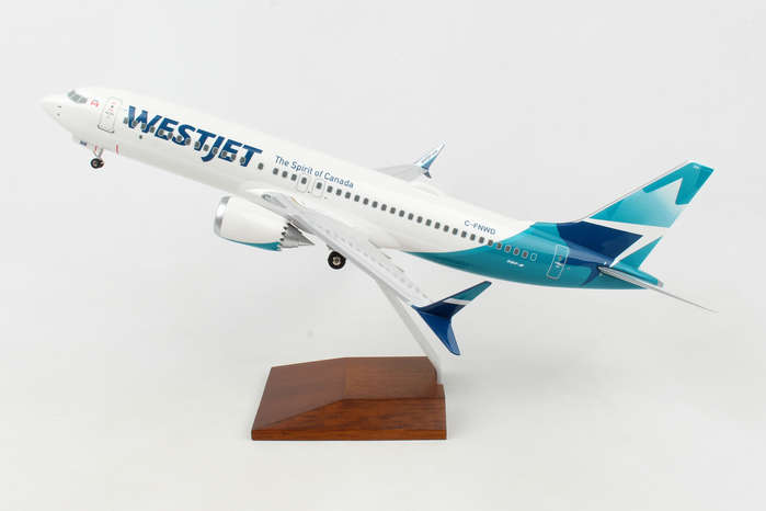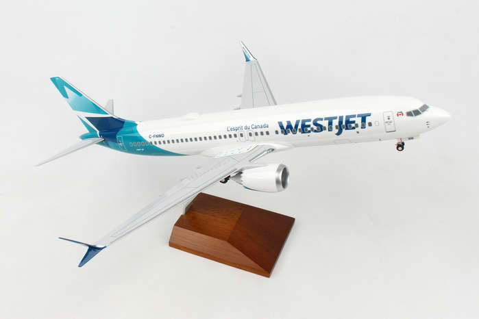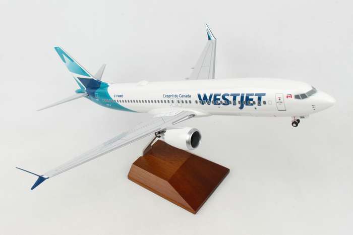Skymarks Westjet 737-MAX8 1/100 W/Wood Stand & Gear New Live
