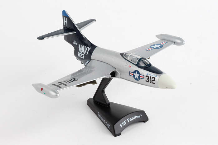 The F9F Panther was Grumman's first jet-powered aircraft and was used extensively by the US Navy and Marine Corps as their primary fighter and ground-attack aircraft in the Korean War. It was a single-engined carrier fighter with permanently mounted wing tip fuel tanks, armed with four 20 mm (0.79 in) cannons and a wide assortment of air-to-ground munitions. Blue-tail fly is a term popularized in the Southern folk song "Jimmy Crack Corn". When the tail on Lt. Richard Clinite's all-aluminum Panther sustained heavy flak damage it was replaced with the tail from a damaged blue-painted Panther giving Lt. Richard Clinite's plane its distinctive look. He successfully flew several missions on this plane until it was so badly hit by flak that it was permanently grounded for major repair. Adult Collectible ages 14+