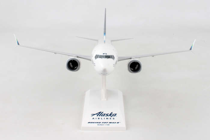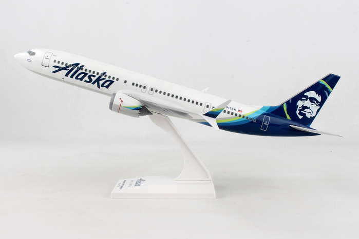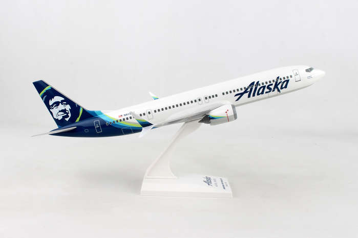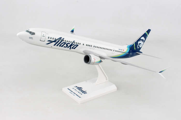 Comprising superior quality, solid, substantial injection molded plastic components with a simple snap-fit design that allows for easy assembly without the need for glue, SkyMarks 1/130 Scale Alaska Airlines Boeing 737 MAX 9 measures approximately 12-7/8-inches long with an 11-3/16-inch wingspan and comes complete with a Display Stand. An accurate, true-to-scale reproduction of the actual aircraft, the model is great for collectors and features authentic, highly detailed graphics and markings. Having commenced service in 2017 as the fourth generation of the Boeing 737, the Boeing 737 MAX 9 is a twin-engine, narrow-body airliner that was designed to succeed the prior Boeing 737 Next Generation series and competes against the Airbus A321neo family. The Boeing 737 MAX line features several noteworthy advantages over earlier 737 variants and has been outfitted with more efficient engines, a fly-by wire system and includes beneficial cockpit enhancements along with improved aerodynamics and a greater range. The 737 Max 9, which has a slightly longer fuselage than the Boeing 737 Max 8, can be configured to seat up to 220 passengers and directly replaces the third generation Boeing 737-900.