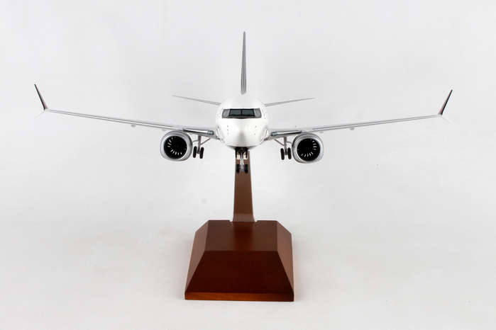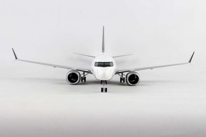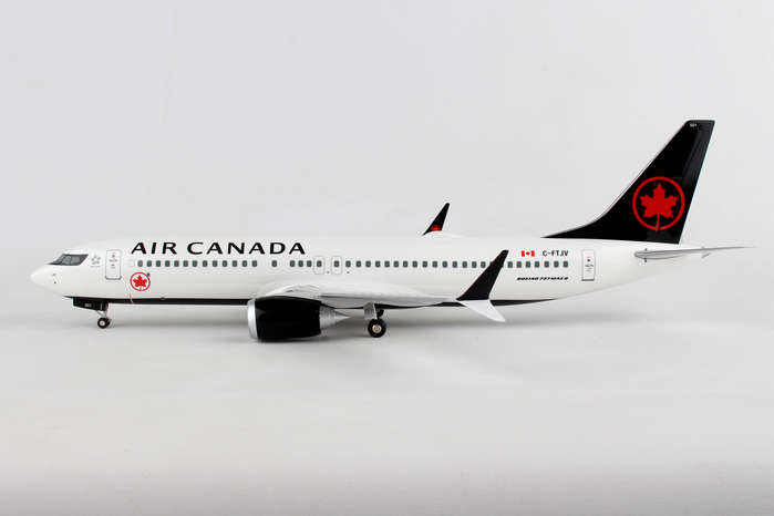 Comprising superior quality, substantial, solid injection molded plastic components with a simple snap-fit design that allows for easy assembly without the need for glue, this SkyMarks Supreme 1/100 Scale Air Canada Boeing 737 Max 8 - Registration C-FTJV - measures approximately 15-1/2-inches long with a 14-5/8-inch wingspan and comes complete with Landing Gear and a Deluxe Wood Display Stand. An accurate, true-to-scale reproduction of the actual aircraft, this Air Canada Boeing 737 Max 8, which is manufactured as an officially licensed product, is great for collectors and features authentic, highly detailed graphics and markings. Having commenced service in 2017 as the fourth generation of the Boeing 737, the Boeing 737 MAX 8 is a twin-engine, narrow-body airliner that was designed to replace the prior Boeing 737 Next Generation series and competes against the Airbus A320neo family. The Boeing 737 MAX line features several noteworthy advantages over earlier 737 variants and has been outfitted with more efficient engines, a fly-by wire system and includes beneficial cockpit enhancements along with improved aerodynamics and a greater flying range. The 737 MAX 8, which has a range of 3,550 nautical miles, can be configured to seat up to 210 passengers and directly replaces the third generation Boeing 737-800.
