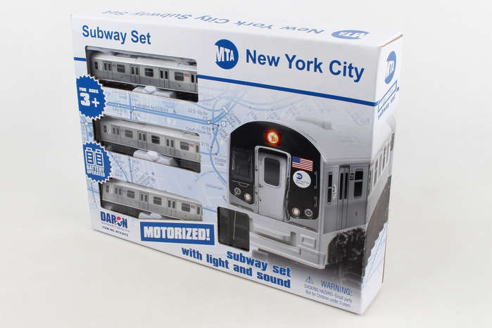 This train set comes with 3 NYC MTA Trains and 16 Pieces of tracks. Fully functional lights and sounds make this train set realistic and fun! All MTA logos and marks are certified by the Metropolitan Transportation Authority. Batteries are not included. Requires 3 AA batteries. Recommended for children Ages 3+.