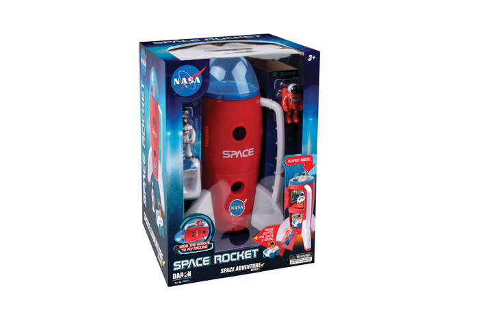 The Space Adventure Series Space Rocket includes fully functional lights and sounds, two opening compartments, two astronauts, and a junior rover for added fun. Astronauts can be placed inside the cockpit, rover, or command center to enhance the play experience. The Space Rocket is also extremely portable with a handle that allows you to carry the rocket anywhere you please! Two 1.5V AA Alkaline batteries are included. Recommended for children ages 3+.