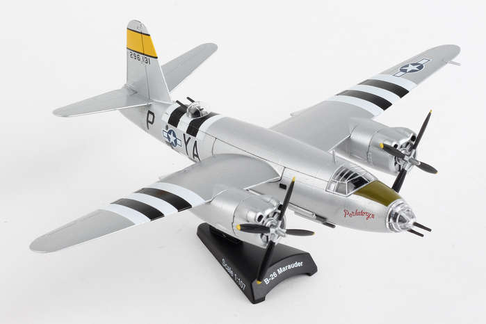 The B-26 Marauder is an American World War II twin-engine medium bomber built by the Glen L. Martin Company from 1941 to 1945. Called to service in 1942, the aircraft took heavy losses in its early days, but was still one of the most successful medium-range bombers used by the US Army Air Forces and its Allies. Perkatory II was named after its pilot. Lt. Robert Perkins. It was assigned to the 386th Bomb Group, 555th Bomb Squadron during World War II. Size of model 7.75"L x 7.785" W Adult Collectible ages 14+