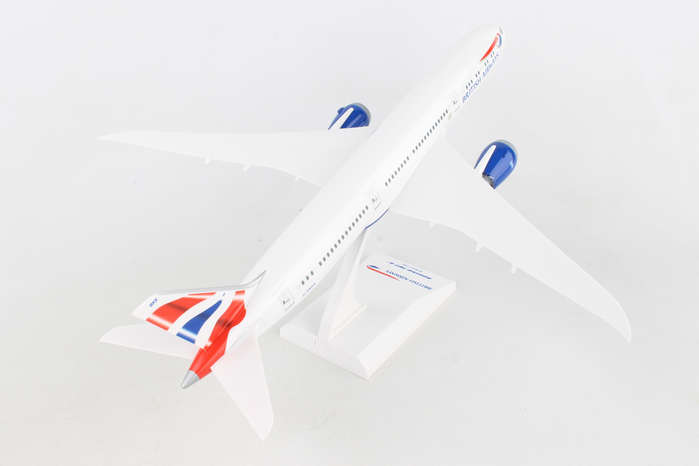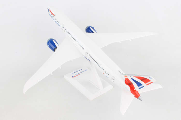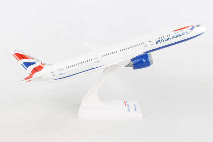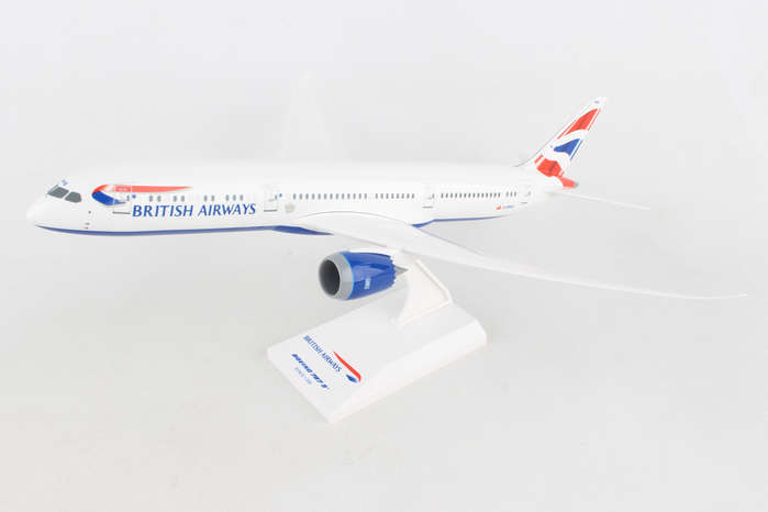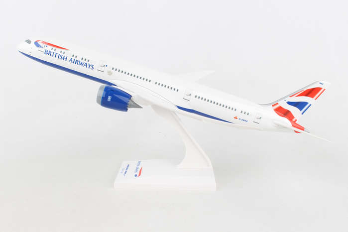 Comprising superior quality, solid, substantial injection molded plastic components with a simple snap-fit design that allows for easy assembly without the need for glue, this SkyMarks 1/200 Scale British Airways Boeing 787-9 Dreamliner - Registration G-ZBKE - measures approximately 12-3/8-inches long with a 12-1/8-inch wingspan and comes complete with a Display Stand. An accurate, true-to-scale reproduction of the actual aircraft, the model is great for collectors and features authentic, highly detailed graphics and markings. Having commenced service with the introduction of the Boeing 787-8 Dreamliner in 2011 as a more fuel-efficient, environmentally friendly successor to the aging Boeing 767, as market demand for the Boeing 747 and 767 had begun to slow down, the innovative, twin engine, wide-body Boeing 787 Dreamliner is currently offered in three different versions that can be configured to seat from 248 up to 336 passengers and is recognized by its prominently curved aerodynamic wings with raked back wingtips and chevrons on its engine nacelles. Technologically advanced with state-of-the-art avionics, electronics systems and an airframe that primarily comprises lightweight composite materials, the Boeing 787 Dreamliner can fly ultra-long-haul, non-stop, point-to-point routes up to 8,500 nautical miles where bigger aircraft cannot be accommodated or are financially justifiable, and offers improved cabin noise and oxygen levels, larger windows, and a very spacious interior design for maximum flying pleasure. Intended to replace the aging Boeing 767-300ER, the Boeing 787-9, which went into service in 2014, is a lengthened version of the launch version Boeing 787-8 with a higher maximum takeoff weight, and because of its increased range over the launch model, can fly 296 passengers to an even greater number of non-stop routes with exceptional efficiency.