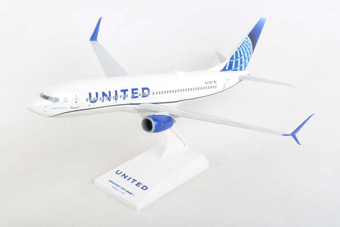 Comprising superior quality, solid injection molded plastic components with a simple snap-fit design that allows for easy assembly without the need for glue, SkyMarks 1/130 Scale United Boeing 737-800 measures approximately 11-3/4-inches long with a 10-1/2-inch wingspan and comes complete with a Display Stand. An accurate, true-to-scale reproduction of the actual aircraft, the model is great for collectors and features authentic, highly detailed graphics and markings. The Boeing 737-800 falls under the category of Boeing's 737 Next Generation aircraft, abbreviated 737NG, and was launched as the third-generation derivative of the 737 Classic. Substantially redesigned with numerous updates to the 737 Classic, the 737NGs primary competitor is the Airbus A320 series. The Boeing 737-800, which was introduced in September 1994, is a stretched version of the 737-700 and can be configured to generally seat between 162 and 189 passengers. Boeing delivered its final 737NGs in January 2020, having replaced it with the fourth-generation 737 MAX, which was introduced in 2017. This United Boeing 737-800 has been painted in United's 2019 introduced livery, which is an evolution of the prior design.