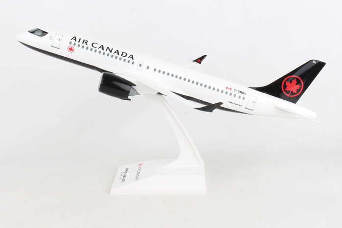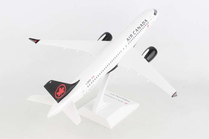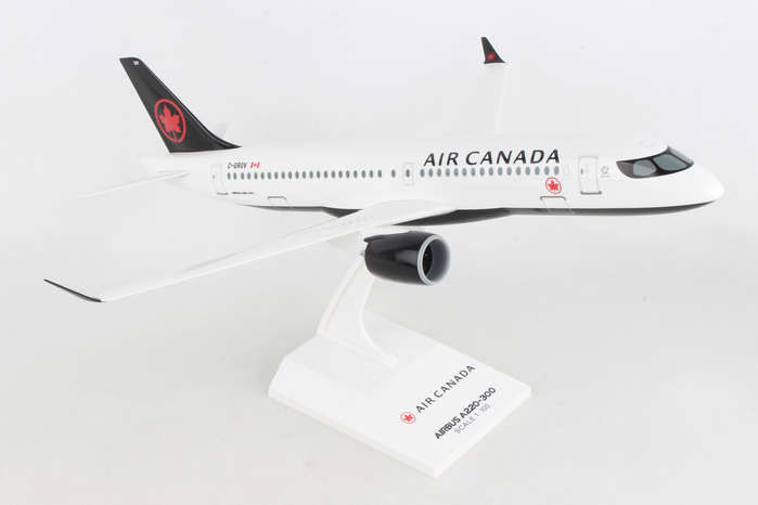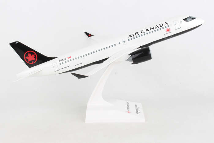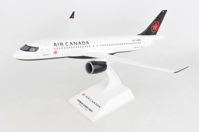 Comprising superior quality, solid, substantial injection molded plastic components with a simple snap-fit design that allows for easy assembly without the need for glue, this SkyMarks 1/100 Scale Air Canada Airbus A220-300 - Registration C-GROV - measures approximately 15-1/16-inches long with a 13-5/8-inch wingspan and comes complete with a Display Stand. An accurate, true-to-scale reproduction of the actual aircraft, the model is great for collectors and features authentic, highly detailed graphics and markings. The Airbus A220-300, which went into service at the end of 2016 and is larger than the initially introduced Airbus A220-100, is a modern, technologically advanced aircraft that was developed to fly 120-160 passengers up to 3,400 nautical miles in quiet comfort to different points that were either not feasible for several reasons or simply not profitable for the airlines. Recognized by airlines for its efficiency and economical operating costs, the Airbus A220-300, which is nearly identical to the Airbus A220-100 variant in almost all respects, enables airlines to cost effectively fly both versions while allowing pilots and flight crews to easily transition from one model to the other. According to Airbus, even though the Airbus A220 Family is the smallest jetliner in Airbus' commercial aircraft product line, not only does it offer unbeatable comfort, with its large seats, ample storage space and large windows, it is a single aisle aircraft that feels like a widebody jet.