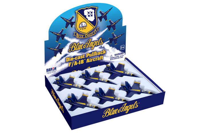 This display comes with 6 die-cast F/A-18 Blue Angels pullbacks. Each pullback is approximately 6 1/2 inches long. Officially licensed. Ages 3+