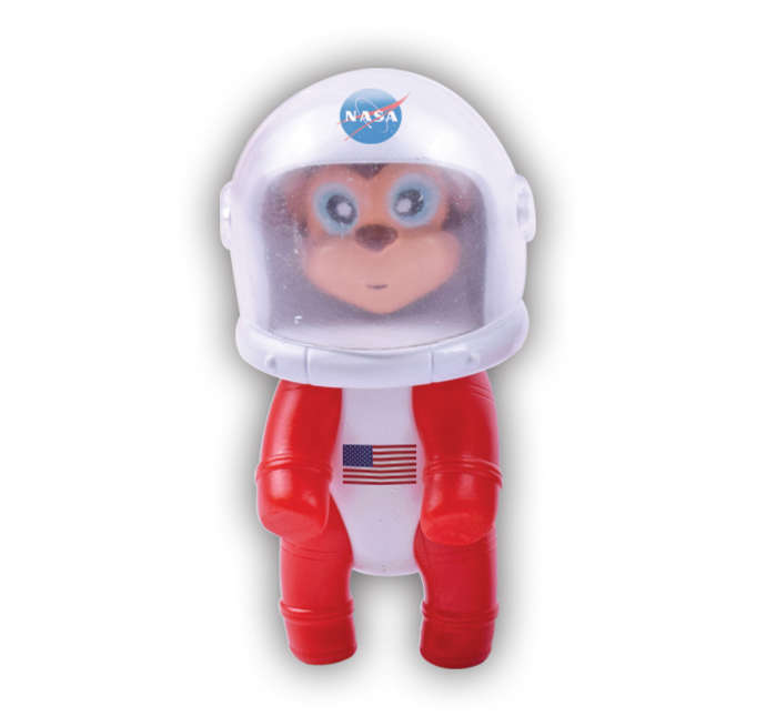 Poseable animal figure in spacesuit with spacewalk tether ports and space helmet with visor. Ages 3+