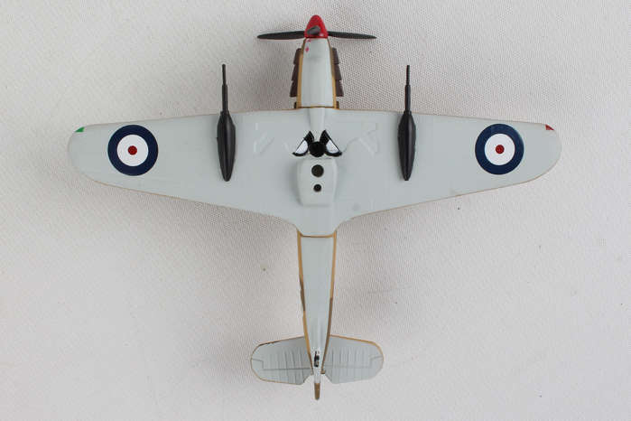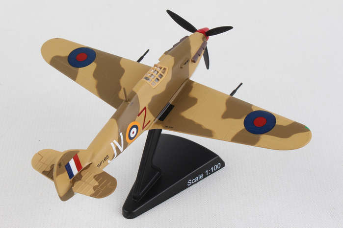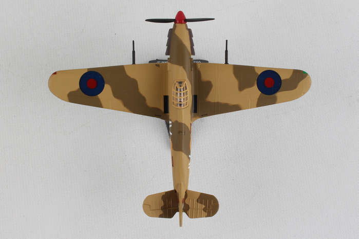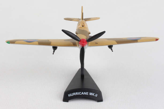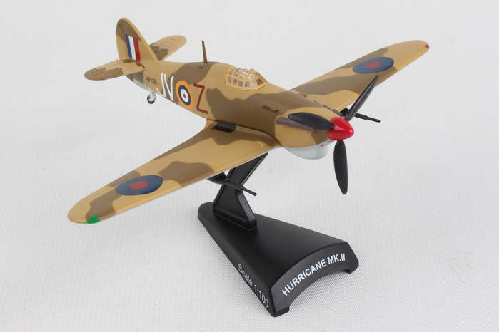 RAF Hawker Hurricane MK. II (1:100) The Hawker Hurricane is a British fighter aircraft made by Hawker Aircraft for the Royal Air Force (RAF). The Hurricane entered squadron service in 1937 and was the workhorse of Britain's air defense during World War II. It became renowned during the Battle of Britain, accounting for 60 percent of the RAF air victories in the battle. The Mk.IID was the tropicalized version mainly used in North Africa after the entry of Italy in the war. Although outclassed in the air by the Luftwaffe's Me-109 and Italy's MC.202, the Hurricane retained an edge in ground-attack role due to its impressive armament. It was nicknamed "Flying Can Openers" due to a pair of 40mm Vickers anti-tank cannon fitted under each wing. This Hurricane Mk.IID, BP188 JV-Z, flown by RAF No. 6 Squadron, was based in Shandur, Egypt. Adult collectible 14+