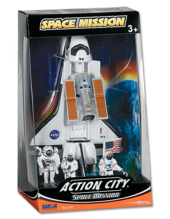 These Space Mission individually packaged toys and playsets are authentic representations of spacecraft past and present. Includes space shuttle and three astronauts. Unlock your imagination with this Space Exploration playset. Recommended for children Ages 3+.