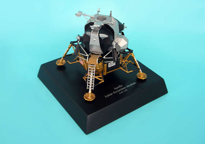 July 20th, 1969...American astronauts take the first steps on the moon. Recapture the glory and success of the U.S. moon landing program with this 1/48 scale replica of the Apollo 11 Lunar Excursion Module. Painstakingly detailed and fully assembled, this model includes a base for desktop or shelf display. Length is 5-1/2" and wingspan is 5-3/4"