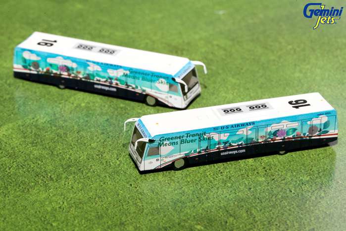 1/200 scale diecast model of the Cobus airport shuttle bus. Model is approximately 2 3/4 inches long.