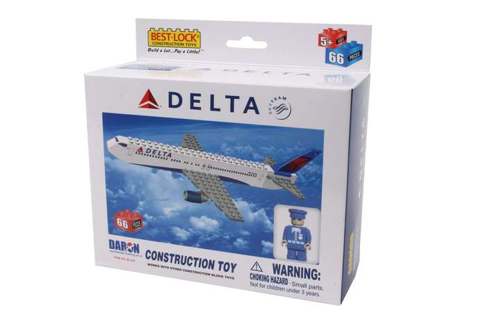 Airline construction block kit includes 55 pieces and is interchangeable with other leading brands. Ages 5+