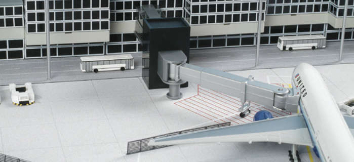 This set contains all of the equipment to build a passenger gate tower in the 1/500 scale. A docking station with two passenger bridges of different lengths will make a great addition to your model airport.