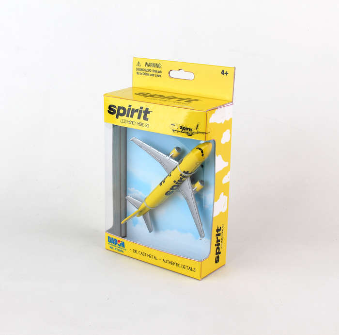 Licensed by Spirit Airlines, your child's imagination will soar as he or she delights for hours as the pilot in command of this durable, diecast metal (with some plastic parts) aircraft. Noted for its authentic details, as it was inspired by and developed in association with Spirit Airlines, not only was the airplane designed to be held and skillfully piloted by small hands, real rolling tires ensure smooth landings at the end of every flight! No batteries or assembly required, this Spirit Airlines airplane is guaranteed to excite and entertain and is a great way for your child to learn about the concept of flying while honing his or her fine motor skills and hand-eye coordination. Collect the entire series! Not suitable for Children under 3 years.