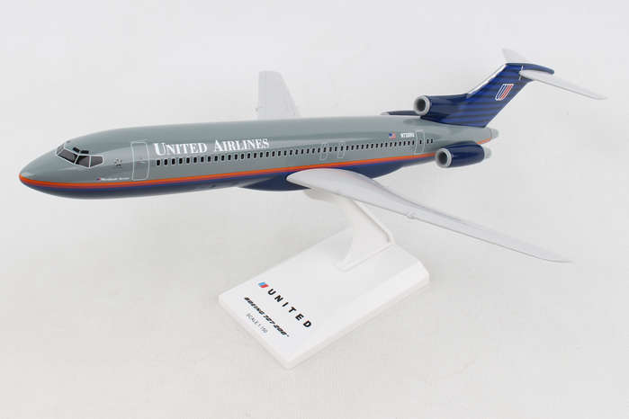 Comprising superior quality, solid injection molded plastic components with a simple snap-fit design that allows for easy assembly without the need for glue, SkyMarks 1/150 Scale United Boeing 727-200 measures approximately 12-3/4-inches long with an 8-inch wingspan and comes complete with a Display Stand. An accurate, true-to-scale reproduction of the actual aircraft, the model is great for collectors and features authentic, highly detailed graphics and markings. The Boeing 727-200 was introduced in 1967 as a 20-foot longer version of the earlier Boeing 727-100 to accommodate more passengers, a greater payload and a slightly longer flight distance. For the mid-90's, United chose to use a more business-like livery, which featured a battleship grey upper fuselage with a dark, midnight blue belly. Mainly used for domestic flights, the Boeing 727-200 is a narrow-body airliner that was developed to address the demand for smaller aircraft for use on relatively short flights from smaller airports. Boeing ended production of the 727 series in September 1984, having built a total of 1,832 planes.