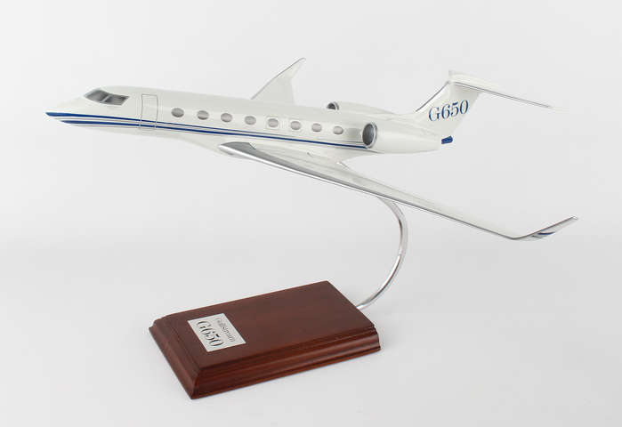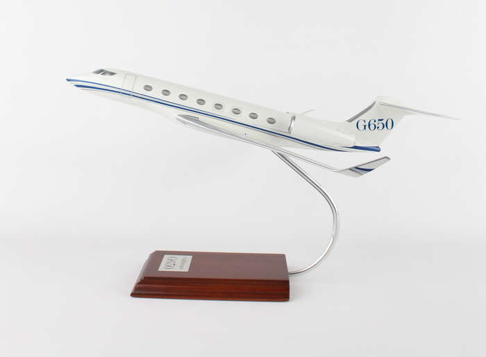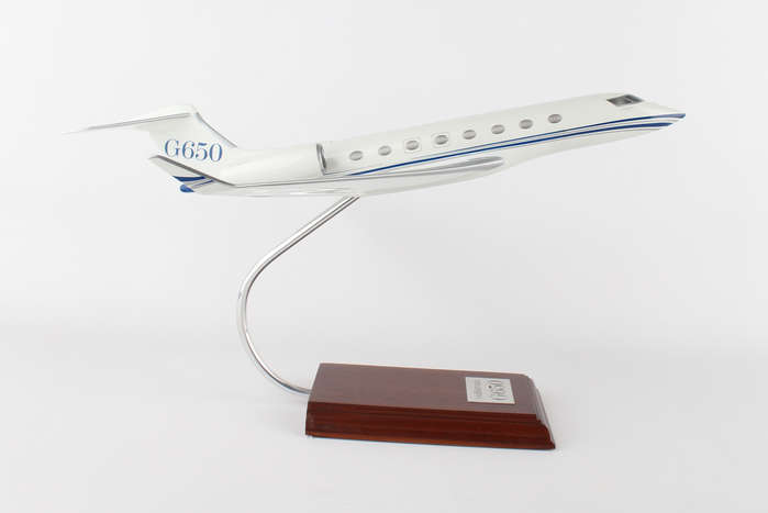 The G650 is Gulfstream's largest business jet and holds the record for the farthest fastest flight in business aviation. This model is handcrafted from resin and measures 16
