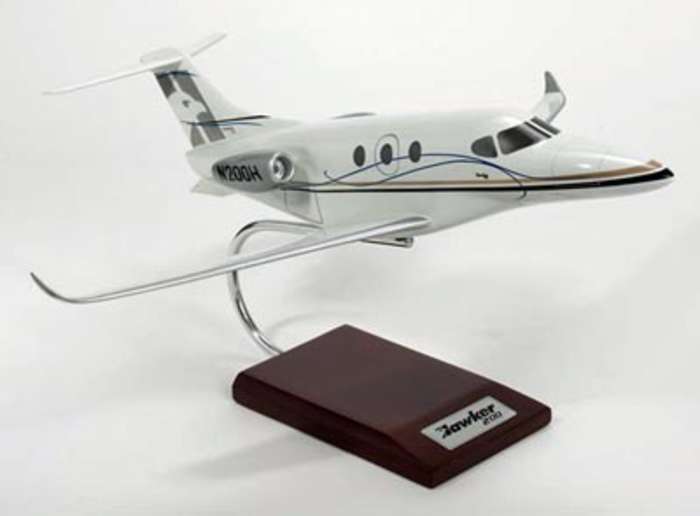 This high-quality replica of the aircraft Hawker 200 is handcrafted from resin and comes with a wooden base. The model is approximately 18L x 18W and stands 10 inches tall.