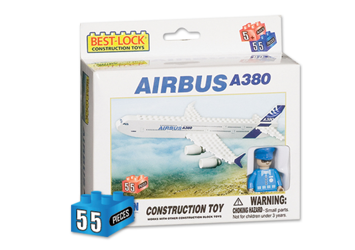 Airline construction block kit includes 55 pieces and is interchangeable with other leading brands. Ages 5+